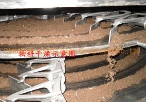 Islak malzeme, kurutucunun üstündeki ilk kurutma katmanına sürekli olarak beslenir.Kırpma kolu döner ve üstel spiral çizgi boyunca büyük kurutma plakanın dış kenarına düştüğünde, kırpma ile döndürülecek ve karıştırılacakMalzeme küçük kurutma plağından dış kenarına taşınacak ve altındaki büyük kurutma plağının dış kenarına düşecek.Hem küçük hem de büyük kurutma plakaları, malzemelerin sürekli olarak kurutma aracılığıyla geçebilmesi için alternatif olarak düzenlenirSıcaklık ortamı doymuş buhar, sıcak su veya termal yağ olabilir. Sıcaklık bir ucundan boş kurutma plakalarına yönlendirilir ve diğer ucundan çıkar.Kurutulmuş malzemeler kurutma plakanın son katmanından kurutucunun dibine düşecek ve daha sonra kazıklarla akıntı çıkışına taşınacak. Malzeme nem, üst kapağındaki egzoz çıkışından çıkarılır. Vakum tipi plaka kurutma makinesi için, nem üst kapağındaki vakum pompası tarafından emilir.Kurutulmuş malzemeler alt katmandan boşaltılacak.Kurutma yeteneği, kurutma makinesi, kanatlı ısıtıcı, çözücü alımı için kondansör, torba toz temizleyicisi, geri dönüş ve karıştırma mekanizması, akım fanı gibi ek cihazlarla donatılırsa iyileştirilebilir.ve vb..